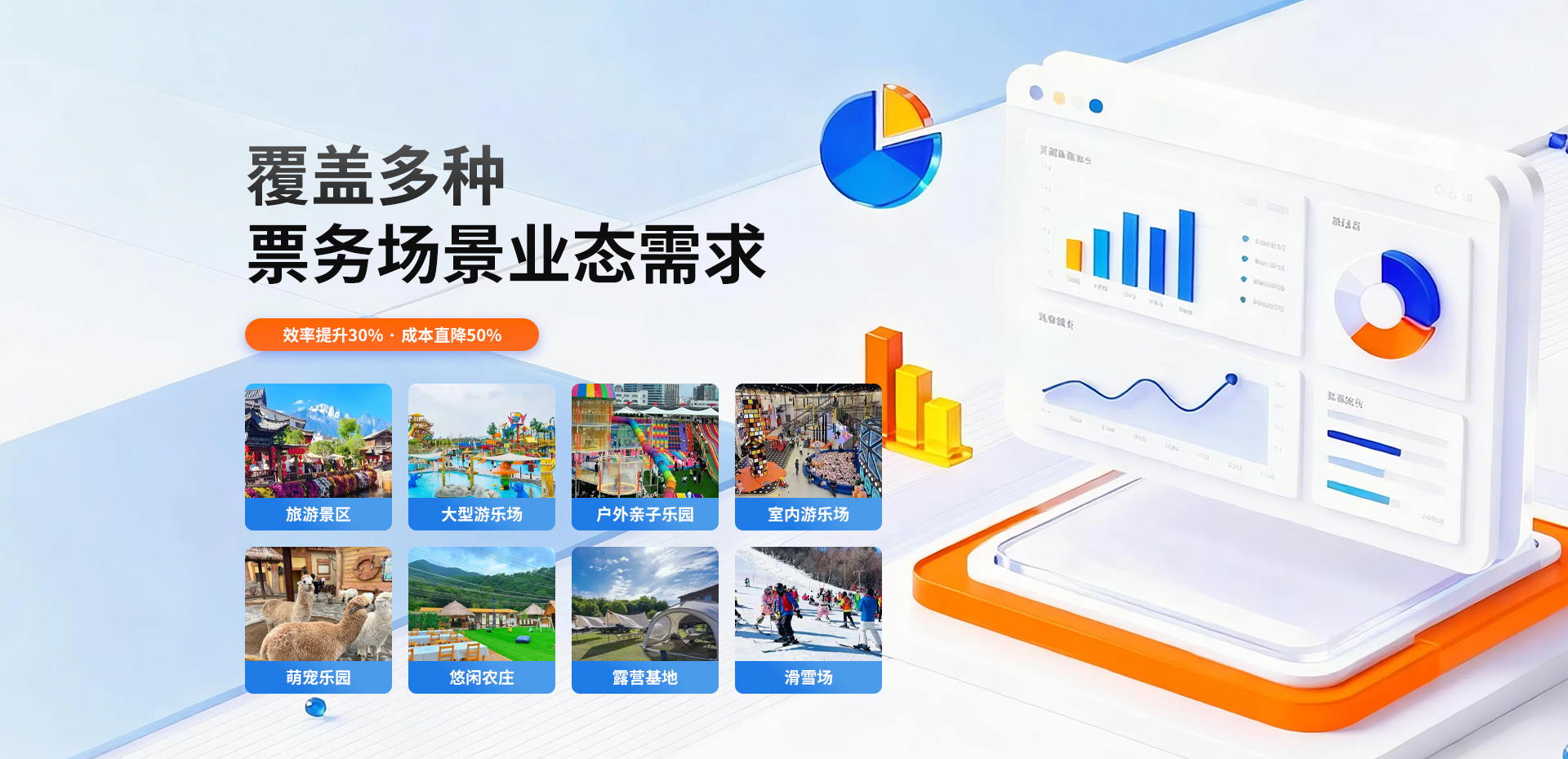 我们的系统很好的解决了传统票务系统操作不方便,价格高,安全稳定性差,不注重二次营销和分销功能缺失的弊端。功能模块按照园区运营管理流程定制开发,完全自主研发。采用sass云端部署,功能操作简洁方便。不仅价格优惠,更从园区经营需求出发,将票务管理与营销互动深度结合,拥有丰富二次营销功能以及老客户分销功能,通过创建多种营销活动,提升客单价以及用户二次消费的能力,让老板投资者尽快回本!